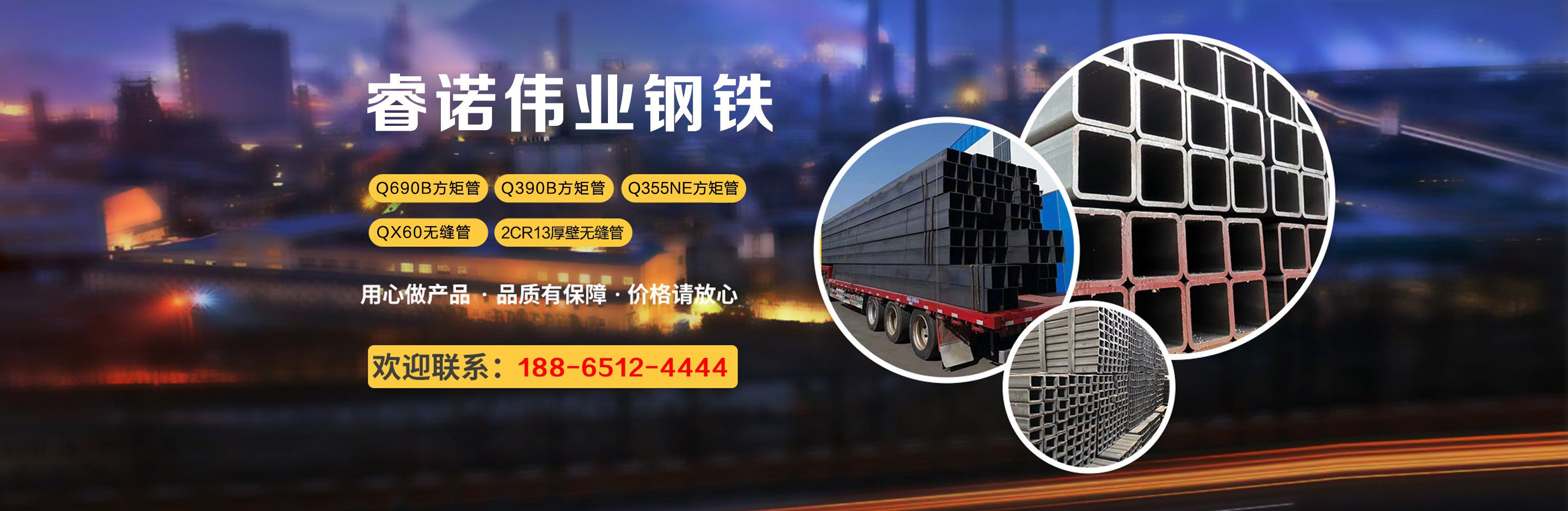 聊城睿諾偉業鋼鐵銷售有限公司是一家專注于制造銷售方管、方矩管、無縫方管、無縫方通、無縫方矩管、Q345B無縫方管、低合金方矩管、山東無縫方管、厚壁方矩管、焊接方管、大口徑方矩管、熱鍍鋅方管、鍍鋅方管、Q345B方管、Q345B方矩管、矩形鋼管、矩形無縫管、矩形無縫鋼管、厚壁方管、厚壁無縫方管、厚壁方矩管、大、小口徑方管、矩形管、矩管、冷拔方矩管、不銹鋼方矩管、無縫方管、大棚管、大棚鋼管、鍍鋅大棚管、冷拔方管的大型鋼鐵企業。所方管矩形管的規格具備了全尺寸:20*20---600*600的方管,20*30---400*800的矩管,厚度:0.6mm---28mm,規格達2800多種;材質為Q235、Q345B、20#、45#、無縫管、合金鋼;可根據客戶要求尺寸定做。產品主要應用領域:建筑鋼結構,大型場館,會展場所,升降機械,船舶制造,倉儲貨架,裝飾裝潢,交通設施,機場建設,鐵路車輛,橋梁支架,礦井支架,立體車庫,戶外廣告,健身器材,風電設備,車輛制造等行業。憑借優良的管理、開發優勢,借助超前的開發理念、先進的發展思想以及成功的運作模式,公司的規模也不斷地發展壯大.公司不斷進取,加快加強項目開發運作,進一步完善開發機制,強勢打造公司的品牌效應。  為適應市場需求,加快發展進程,公司積極行動,經過...